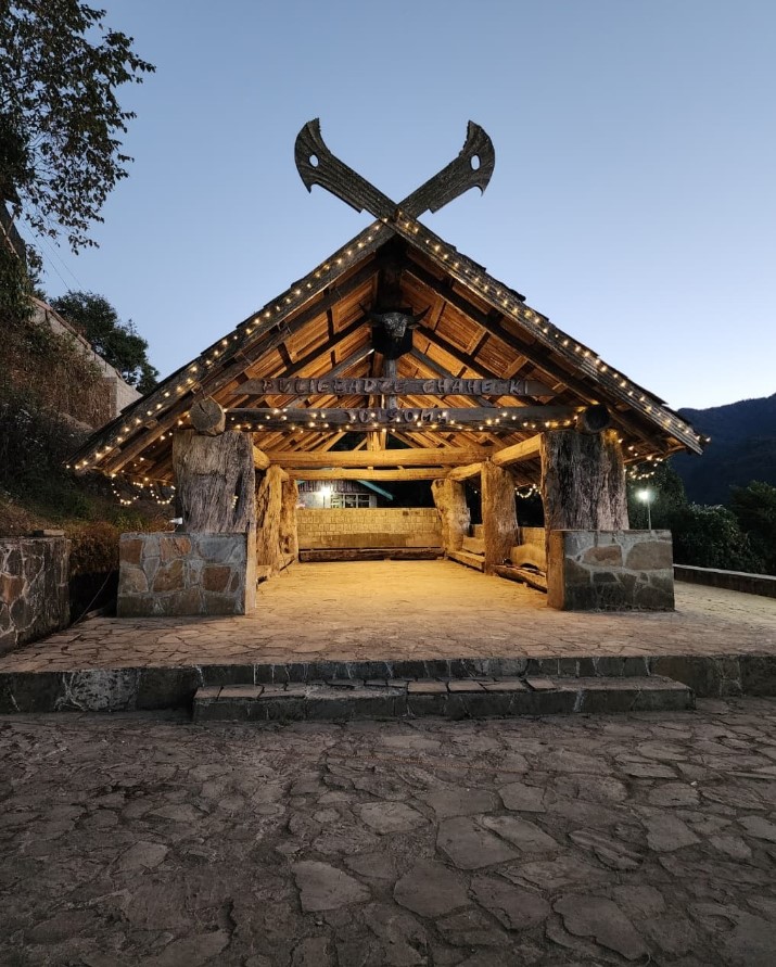 Pulie Badze Chahe Ki is a community resting house constructed by the Angami people of Jotsoma village. This traditional resting place is located at the base of Puliebazde,a famous mountain in the village.
